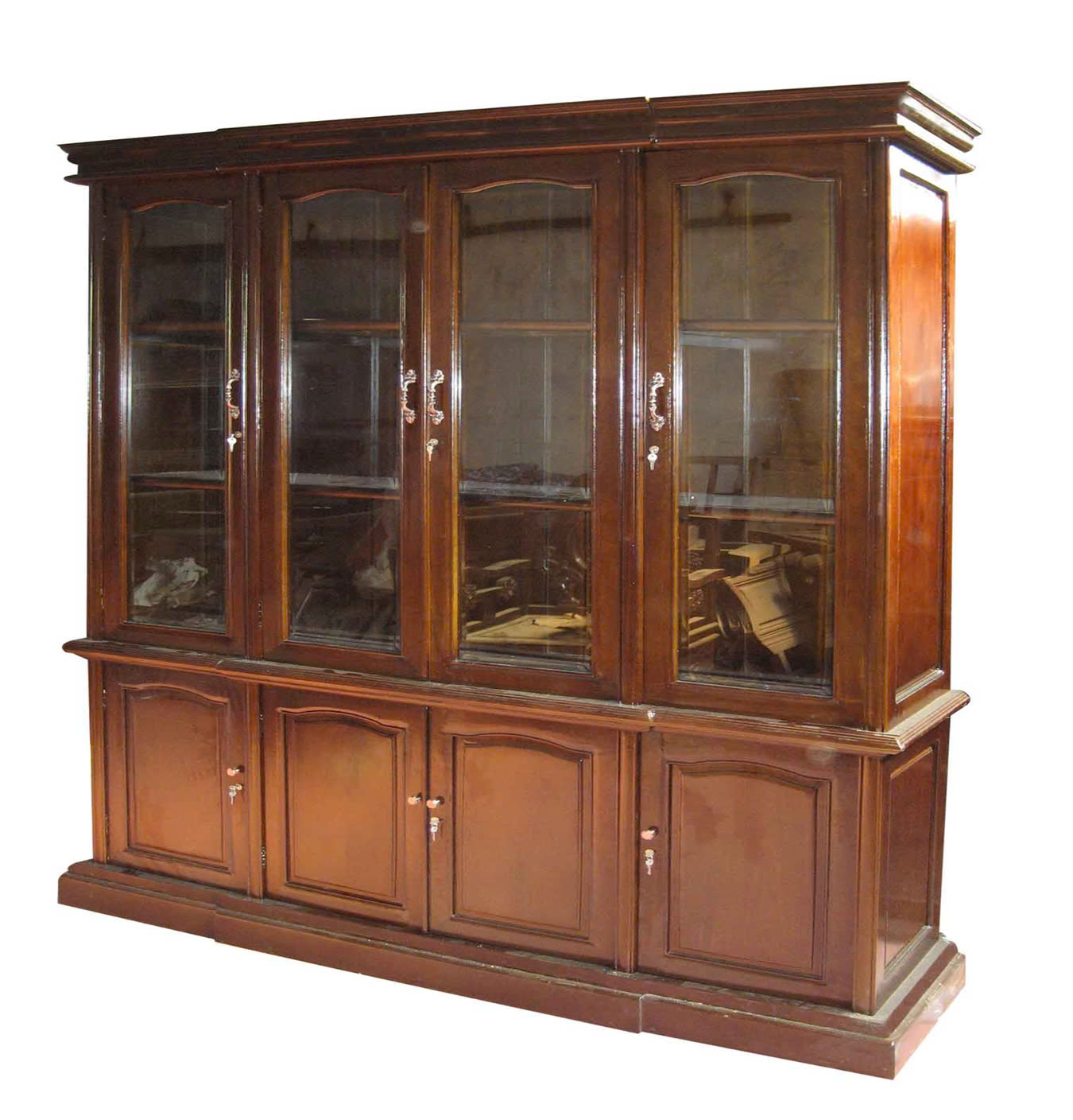 - Thùng trên tủ có khung cánh bằng gỗ lắp khoá Việt Tiệp, soi chỉ tống hậu nổi, lồng kính 5 ly mài vát cạnh, thùng tủ chia 2 đợt bằng gỗ chắc chắn dày 3 cm để tài liệu.